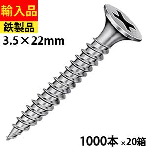 ドライウォール 軽天ビス 軽天 ビス ネジ 内装 ラッパ頭 ユニクロ 3.5 × 22 1箱 1000本 × 20箱