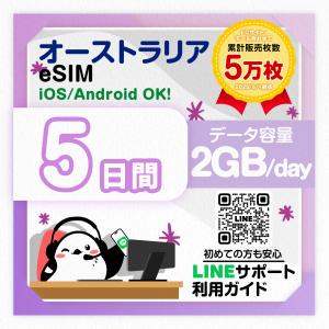 オーストラリアeSIM:使用日数:5日間/データ容量:2GB(day)/簡単設定/有効期限90日/最短即日発行/パスポート番号不要/データ通信専用