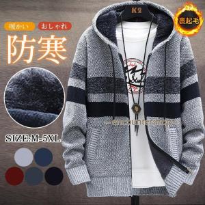 パーカー メンズ ニットカーディガン 裏起毛 ジャケット フード付き 厚手 スウェットパーカーニットセーター 長袖 防寒 秋冬 ス