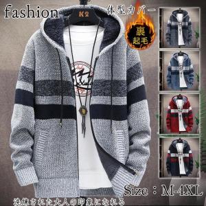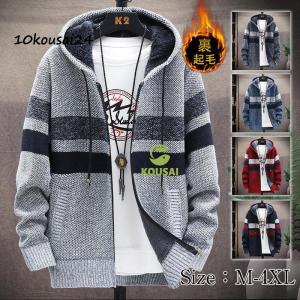 パーカー メンズ ニットカーディガン 裏起毛 ジャケット フード付き 厚手 スウェットパーカー ニットセーター 長袖 防寒 秋冬 トップス
