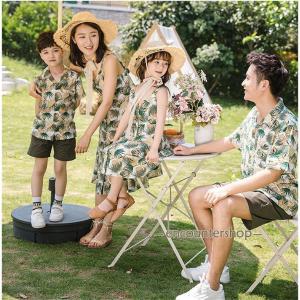 親子 アロハシャツ 親子コーデ カップル メンズ レディース キッズ ペアルック 夏服 お揃い アロハ ワンピース リゾート 子供服 半袖 ゆったり