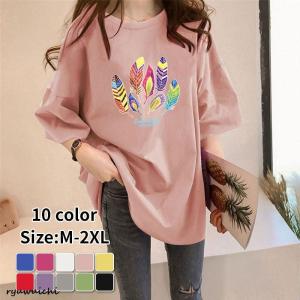 Tシャツ レディース 半袖 トップス ゆる ティーシャツ 丸首 大きいサイズ プルオーバー カジュアル 着痩せ 上着 親友ギフト 団体服 夏新作