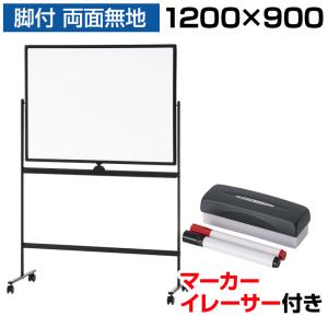 法人様限定 ホワイトボード おしゃれ 脚付き 両面 ブラックフレーム 1200×900mm トレイ マーカー イレーザー付き マグネット対応 白板 オフィス 塾 事務所