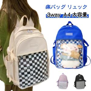 リュック 痛バッグ 女子 A4 痛バ 3way 缶バッチ 大容量 ガールズ カジュアル レディース メンズ 男女兼用 リュック 男子 ビニールバッグ