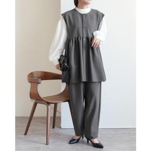 セットアップ ペプラムべスト・ワイドカーブパンツ2点セット レディース
