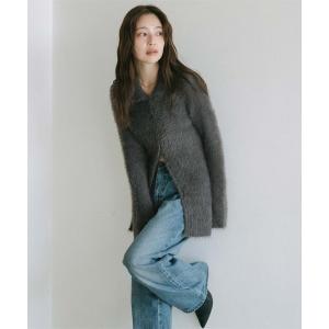 カーディガン 襟付きシャギーニットカーディガン レディース