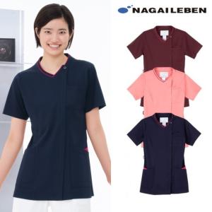 RF5087 ナガイレーベン スクラブ 白衣 女性用 医療 ナースウェア 半袖 PHSポケット 接触冷感素材 ストレッチ 吸水 防汚