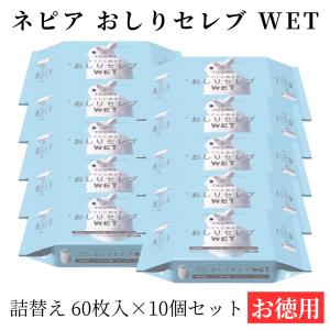 おしりセレブウェット 詰め替え 60枚入 10パック お尻セレブ オシリせれぶ wet 保湿成分配合 抗菌容器 おでかけ 王子ネピア おしりふき