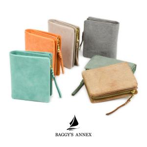 二つ折り財布 ミニ財布 小銭入れあり 小さめ イタリアンレザー シビラ リスシオ ワックスレザー ロウ引き ラウンド型 牛革 バギーポート 本革 革小物 経年変化
