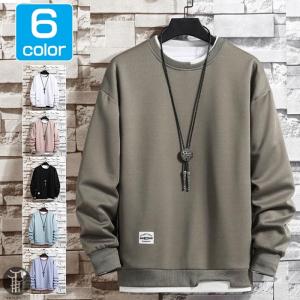 トレーナー レイヤード風Tシャツ 重ね着風 メンズ トップス 切り替え スウェット オシャレ プルオーバー 長袖 クルーネック 春服 秋服 新作