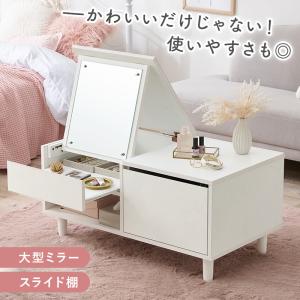 コスメテーブル VT-7200 机 テーブル ローテーブル コスメワゴン 収納机 大容量 鏡付 コンパクト VT-7200WH