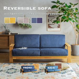 夏冬兼用リバーシブルカバーリングソファ 木フレーム コーデュロイ/ファブリック オーク ウォールナット 洗濯 ドライクリーニング オーク/ウォールナット