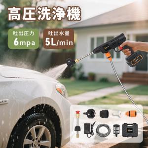 高圧洗浄機 コードレス高圧洗浄機 充電式 吐出水量6L/min 強力噴射 バッテリー高圧洗浄器 充電式高圧洗浄機 6段階マルチスプレー コンパクト洗車機強力噴射
