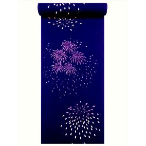 浴衣 反物 NO.429 濃紺地・花火柄・注染染め/耳あり