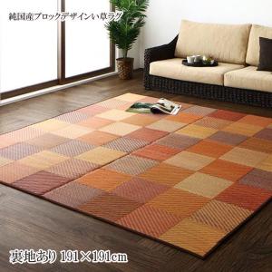 ラグ い草 い草ラグ 安い おしゃれ おすすめ 人気 格安 激安 通販 ブロックデザインラグ 純国産 い草ラグ リリーマ 裏地あり 191×191cm 500026586