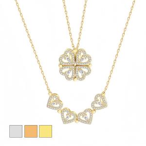 ネックレス レディース 四つ葉のクローバー お花 2way ステンレス 贅沢 18KGP シルバー ゴールド 女性 誕生日お祝い プレゼント