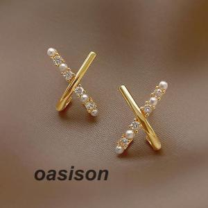ピアス レデイース X型 パール キュービックジルコニア 2連風 キラキラ ゴールド 大人可愛い 上品 通販 激安アクセサリー 女性