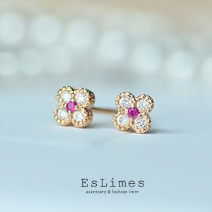 ピアス レディース お花 CZ 四つ葉のクローバー 小さめ 大人可愛い シルバー ゴールド 18kgp カジュアル おしゃれ 女性 オフィス ポイント利用