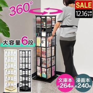 本棚 回転 6段 スリム 大容量 回転式本棚 幅40×40cm 高さ133cm 4面 360度回転 省スペース 収納 コミックラック タワーラック 棚 回転棚 1年保証 送料無料