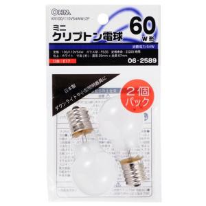 オーム電機 ミニクリプトン電球 E17 60W形 ホワイト 2個入り KR100/110V54WW/2P