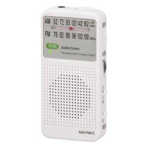 オーム(OHM) 電機AudioComm ラジオ ポータブル コンパクトラジオ AM/FMステレオ ホワイト ステレオイヤホン付き スピーカー搭載 R
