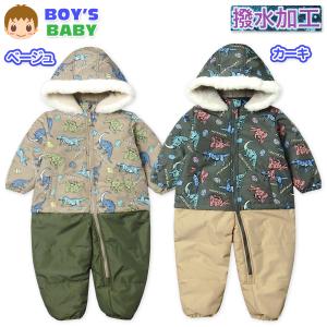 送料無料 男児 ベビー 裏フリース 中綿 ジャンプスーツ アウター あったか 撥水 前開きファスナー 恐竜柄 カバーオール iw-0739