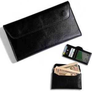 札束入れ 薄型 お札入れ ケース マグネットフラップ お札だけ入れる財布 メンズ レディース 本革 通帳入れ 保管ケース (ブラック)