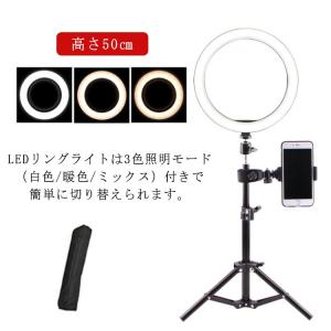 LED リングライト ビデオライト 生放送ライト 高さ50cm 卓上 外径26cm スマホライトリングライト 調光 調色 自撮り 撮影用 白色 暖色