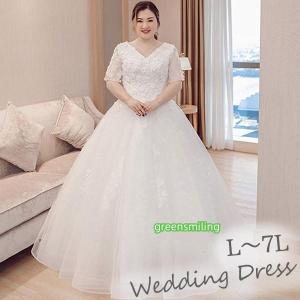 ウェディングドレス 袖あり 5分袖 大きいサイズ ぽっちゃり 白ドレス Vネック ウエディングドレス 体型カバー 着痩せ 結婚式 編み上げタイプ