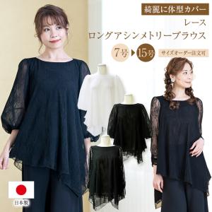 演奏会ブラウス 合唱ブラウス 体型カバー ブラウス 演奏会 白 黒 フォーマル レース ロング アンシンメトリー ブラウス 着痩せ コーラス ステージ 衣装 (bl839)