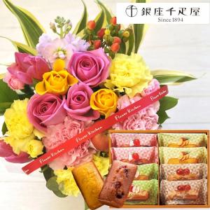 花とスイーツのセット バラアレンジメントと【銀座千疋屋】 フルーツフィナンシェ セット 誕生日 記念日 お祝い花 即日発送 あすつく お取り寄せ FKAA