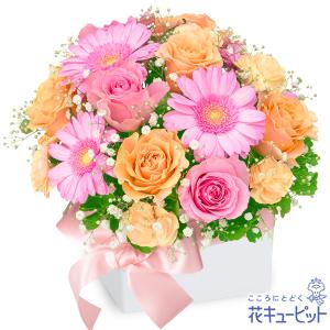 【退職祝い】花キューピット 花 ギフト お祝い プレゼントピンク&オレンジのキューブアレンジメント