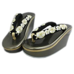 【訳有り 少難あり】 草履 ぞうり 厚底ヒール 濃渋金台黒地 金糸入り八重桜刺繍鼻緒 フリー 振袖 成人式 卒業式 袴 着物 女性用 振袖用