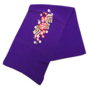 【訳有り 少難あり】 帯揚げ 帯上げ 刺繍入り 正絹 紫色地牡丹小桜源氏香 日本製 振袖 成人式 着物