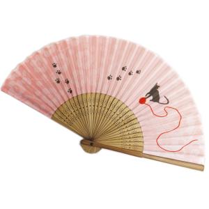 【訳有り 少難あり】 扇子 女性用 和柄 ピンク梅地猫ねこと毛糸玉 浴衣 着物 猫柄