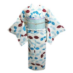 【訳有り 少難あり】 着物 洗える 夏用 小紋 と 絽軽装帯 付け帯 2点セットオフホワイト 白色地萩葉 M 吸水速乾 夏物 作り帯 女性用