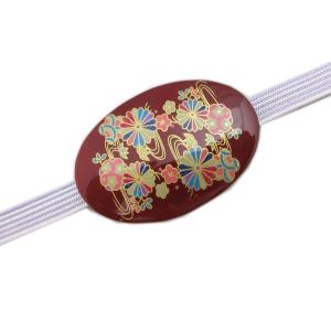 【訳有り 少難あり】 帯留め 帯止め 漆塗蒔絵風 濃赤色地菊梅花流水 木製 着物 きもの 浴衣 帯どめ