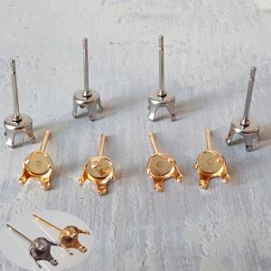アレルギー対応 ステンレス 【サージカルステンレス 316】【10個】 4爪ピアスパーツ 立爪 石座 ゴールド シルバー 金属アレルギー