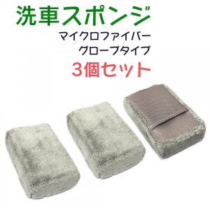 3個セット マイクロファイバー 洗車スポンジ グローブタイプ ラクラク洗車 車用