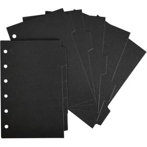 仕切カード A7 インデックスカード 6穴 5山 2組計10枚 ペーパー ファイル インデックスシート 仕切り 手帳 ノート (ブラック)