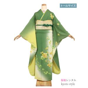 振袖 レンタル 成人式 フルセット 結婚式 振袖レンタル 緑 キミドリ レトロ 貸衣裳 貸衣装 フルレンタル トールサイズ 個性的 柄少なめ 72040