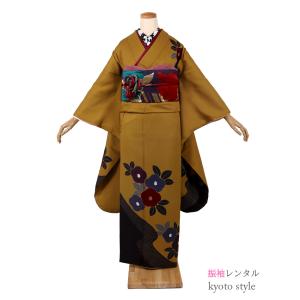 振袖レンタル 成人式 からし 黄色 フルセット 結婚式 パーティー お正月 振袖レンタル 椿 貸衣裳 着物 レンタル アンティーク調 小さいサイズ 女性 72179