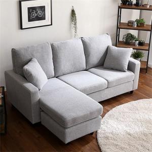 カウチソファー 3人掛け 約幅176cm ライトグレー クッション 取り外し式木製脚付き リビング ダイニング 組立品