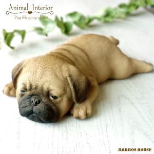 犬 パグ かわいい 置物 おしゃれ オブジェ 置き物 アニマル オーナメント 癒し 眠り リビング 玄関 机上 リアル インテリア 雑貨 可愛い うつ伏せ寝 お疲れ