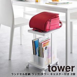 ランドセル収納ラック タワー キャスター付き 2段 山崎実業 tower 教科書 絵具セット 習字道具 バッグ 収納 ホワイト ブラック 1747 1748