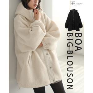 ボアビッグブルゾン レディース アウター ブルゾン フード 30代 40代 50代 防寒 あったか ボア コート 体型カバー メール便不可 送料無料