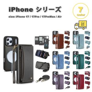 iPhone PUレザー 手帳型 ストラップ ウォレット カード収納 Magsafe マグセーフ対応 ケース 17/17Pro/17ProMax/Air 全7色 耐衝撃 薄型 軽量 カバー 送料無料