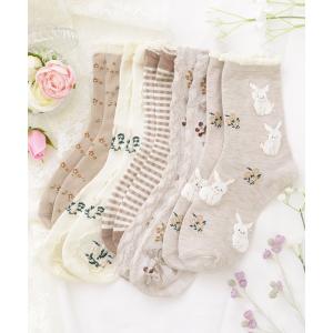 靴下 「10足セット」アースカラーナチュラルデザインショート丈ソックス レディース