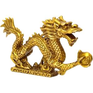 龍の置物 竜の置物 玄関 開運 風水 置き物 5本爪 龍神様 黄金龍 干支 (ゴールド, 12.5cm x 2.5cm x 6.8cm)