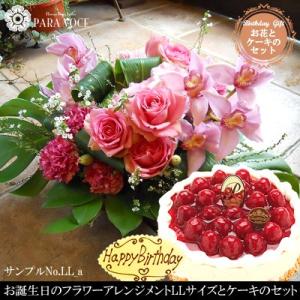 お誕生日のフラワーアレンジメントLLサイズ ( LL_a )と洋菓子店カサミンゴーの最高級ケーキとのギフトセット 花とスイーツセット ケーキと花のギフトセット